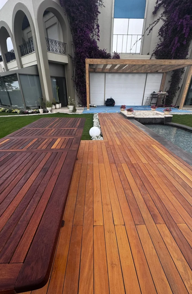 Deck ve thermowood sistemlerinden özel üretim mobilyalara, pergole ve ahşap aydınlatma çözümlerinden lake kapı ve doğrama uygulamalarına kadar geniş bir hizmet yelpazesiyle çalışmaktayız. Tüm projelerde tasarım sürecinden üretime, saha uygulamasından teslim aşamasına kadar her adım planlı, kontrollü ve kalite odaklı bir yaklaşımla yönetilir.