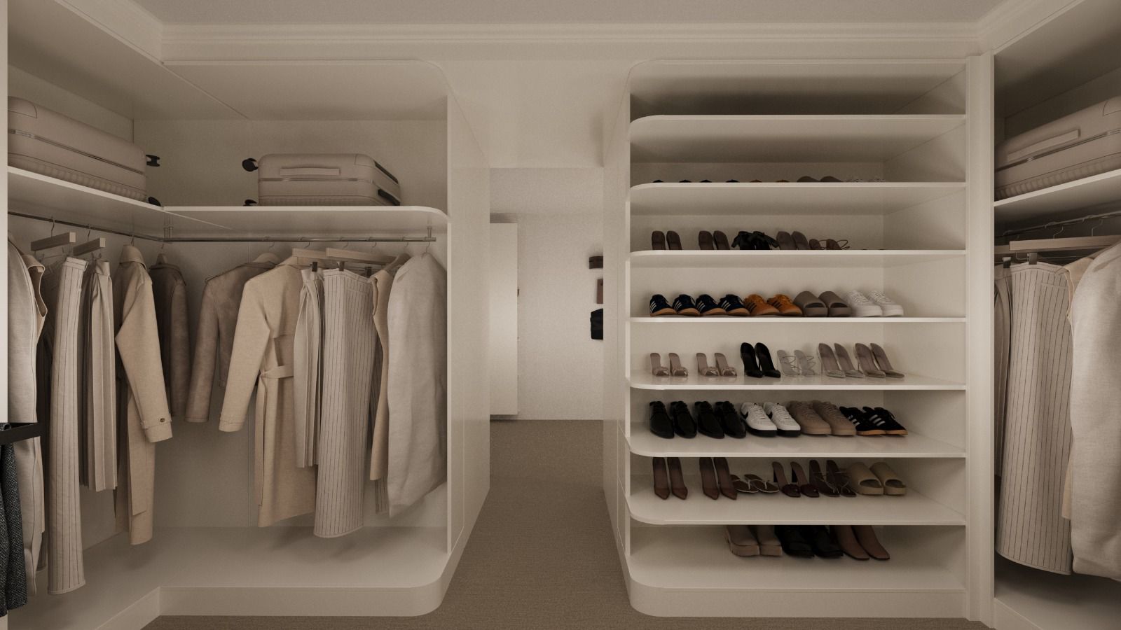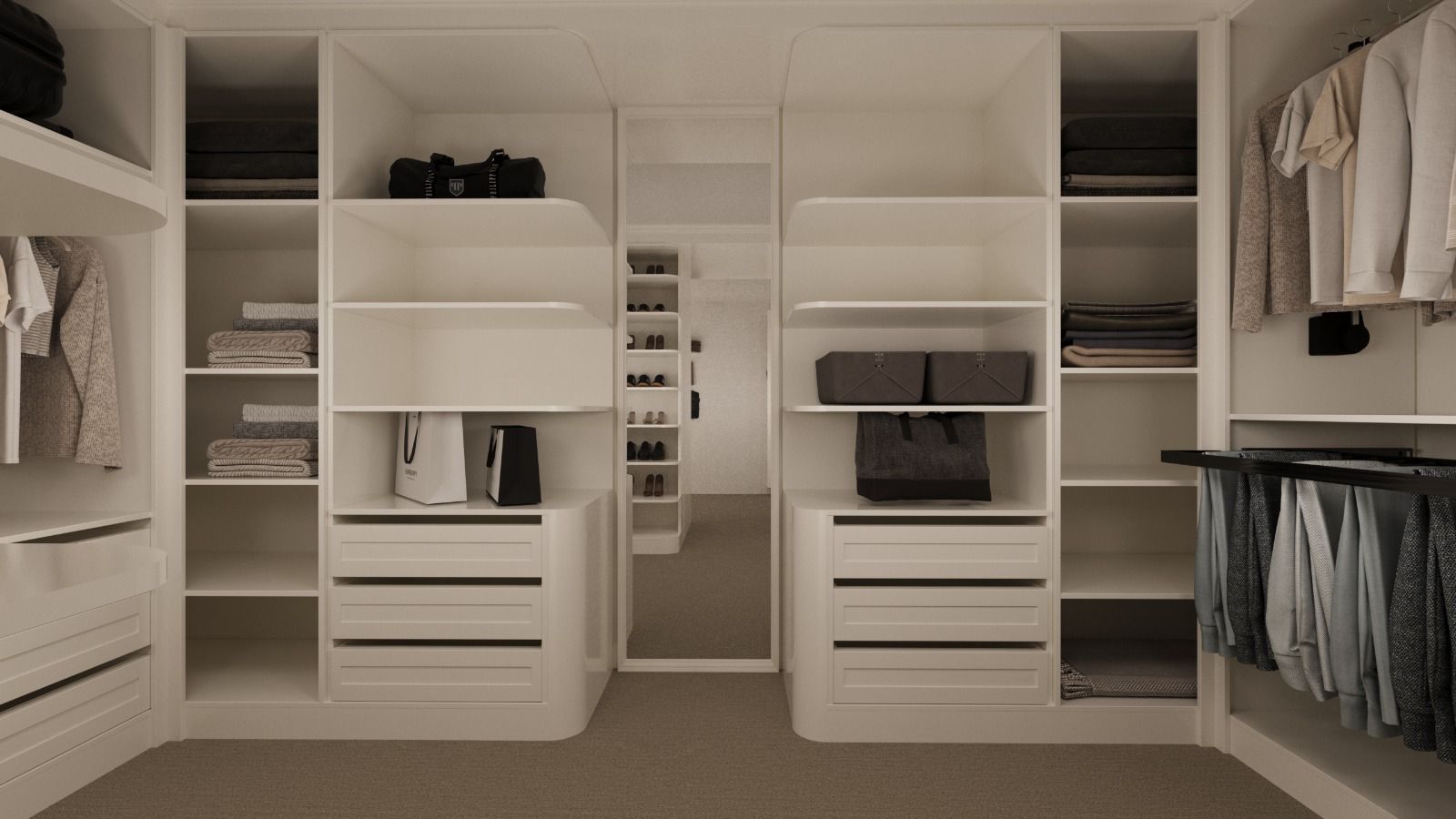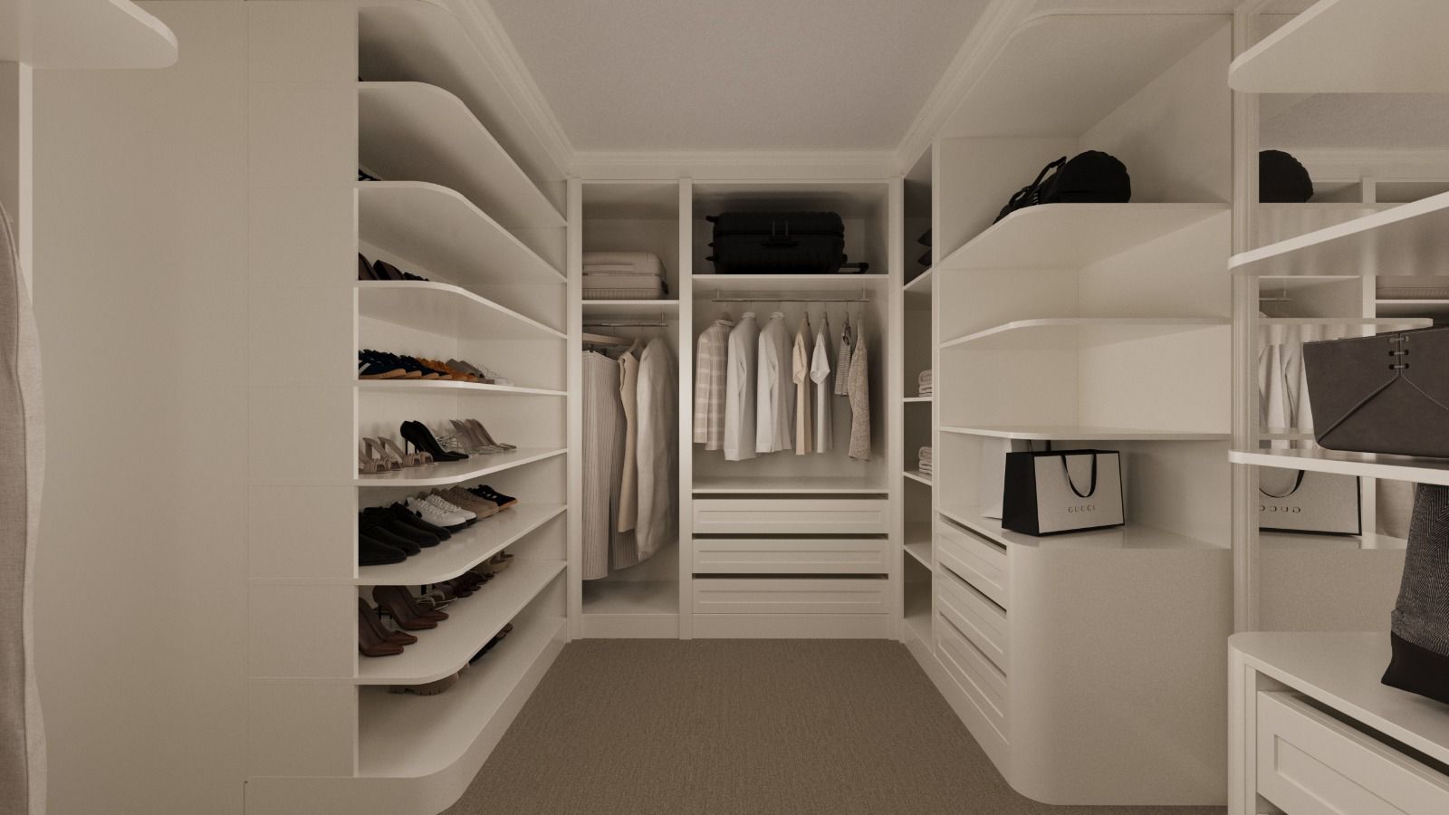 Depolama ergonomisi, kullanım konforu ve estetik bütünlük esas alınarak geliştirilen sistem; özel ölçü imalat, yüksek kaliteli yüzey uygulamaları ve detay hassasiyetiyle hayata geçirilmiştir. Mekâna entegre aydınlatma çözümleri ve fonksiyonel iç düzenleme elemanlarıyla hem görsel prestij hem de maksimum kullanım verimliliği sağlanmıştır.